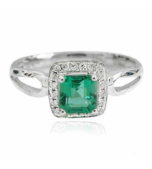 0.58 Cts Green Emerald Octagon Shape Gemstone From Zambia 0.08 Cts Diamond Ring in 18k Gold Jewelry Gross Wt. 2.77 Gms