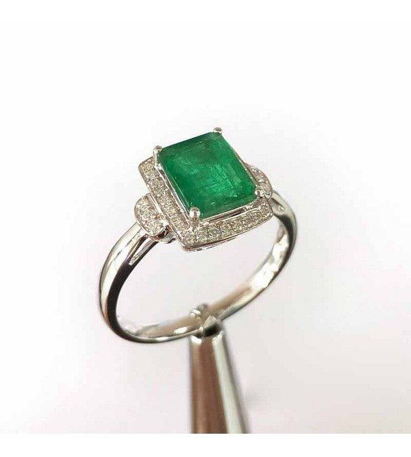 1.33 Cts Green Emerald Octagon Shape Gemstone From Zambia 0.126 Cts Diamond Ring in 18k Gold Jewelry Gross Wt. 3.14 Gms
