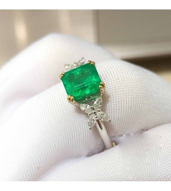 18K Gold, Emerald, Ring, 1.65 Carat, Green Color, Zambia Origin, Certificate: NJQSIC