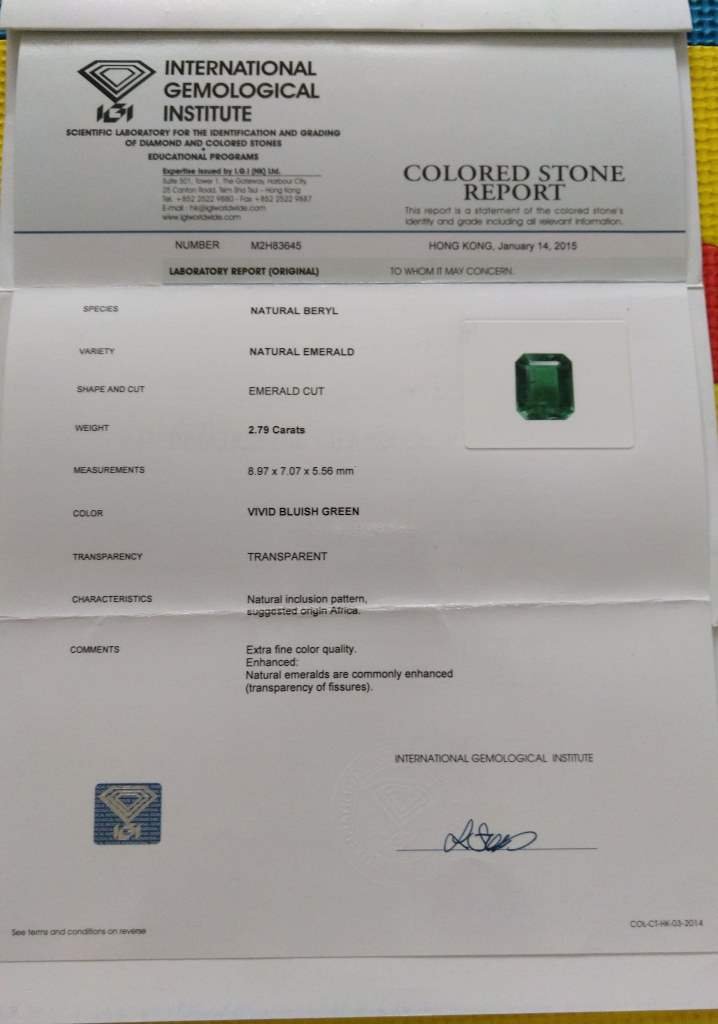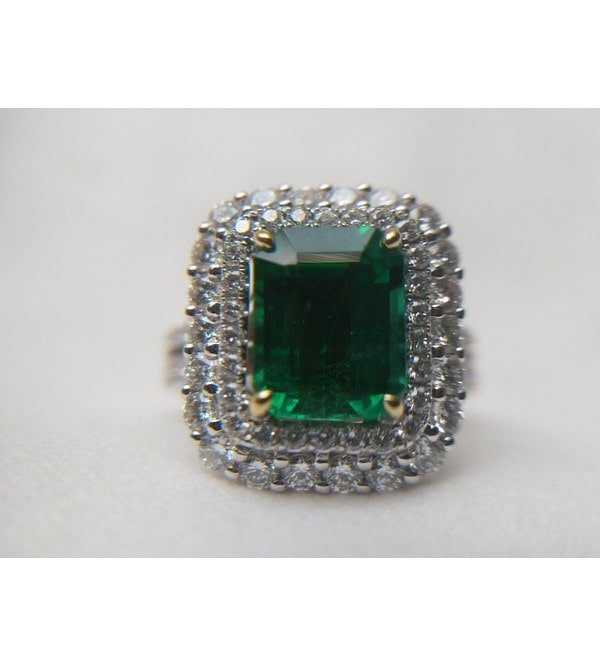 2.79 Cts Vivid Green Emerald Octagon Shape Gemstone From Zambia 1.124 Cts Diamond Ring in 18k Gold Jewelry Gross Wt. 7.86 Gms