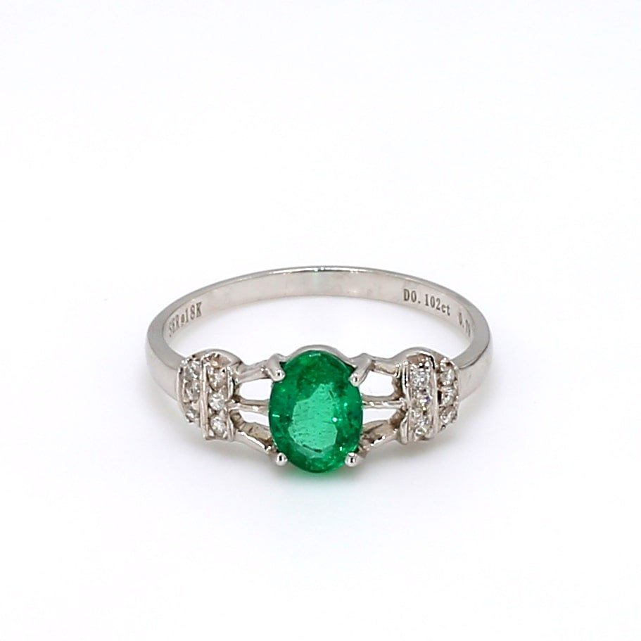 0.79 Cts Green Emerald Oval Shape Gemstone From Zambia 0.102 Cts Diamond Ring in 18k Gold Jewelry Gross Wt. 2.122 Gms