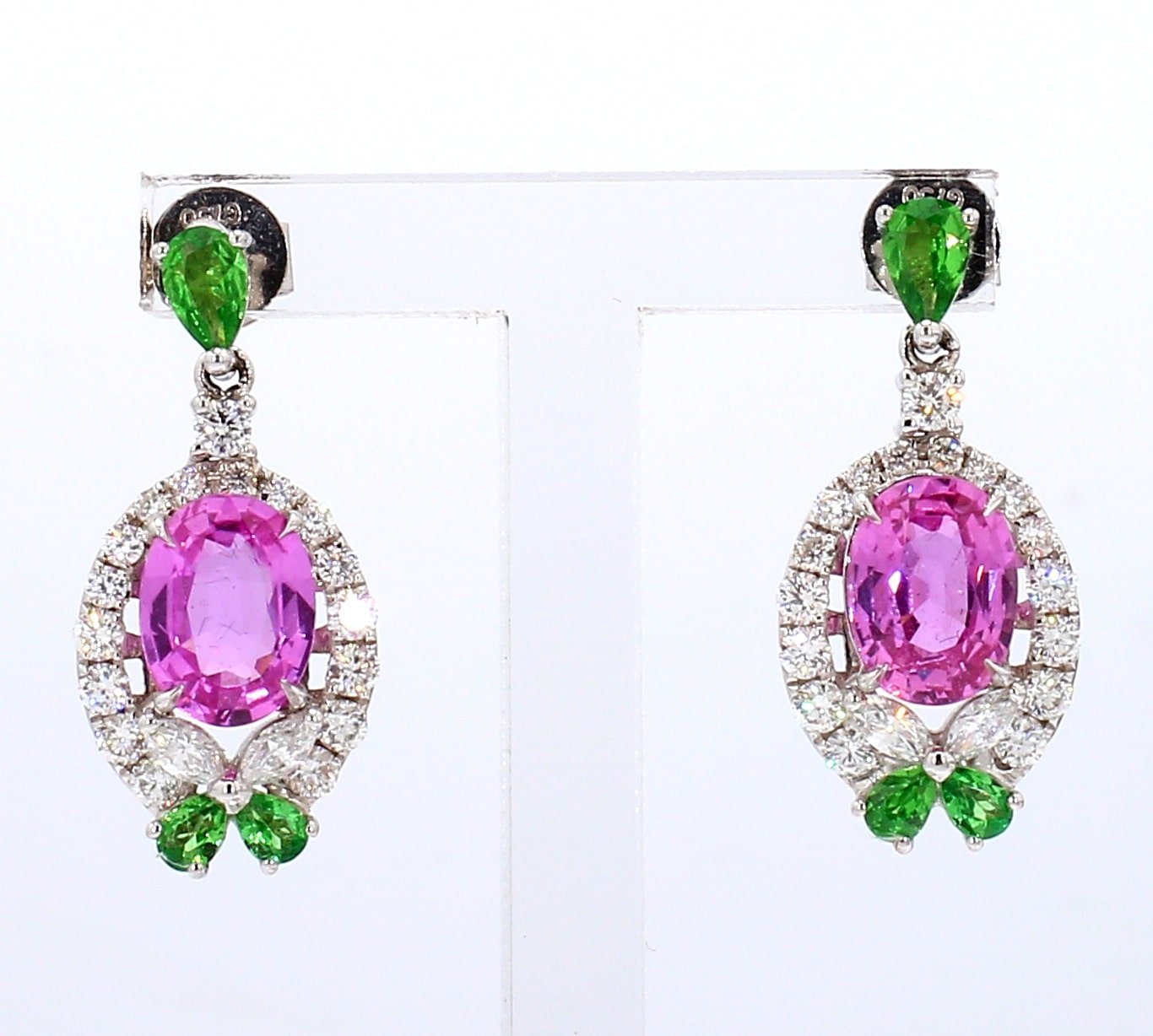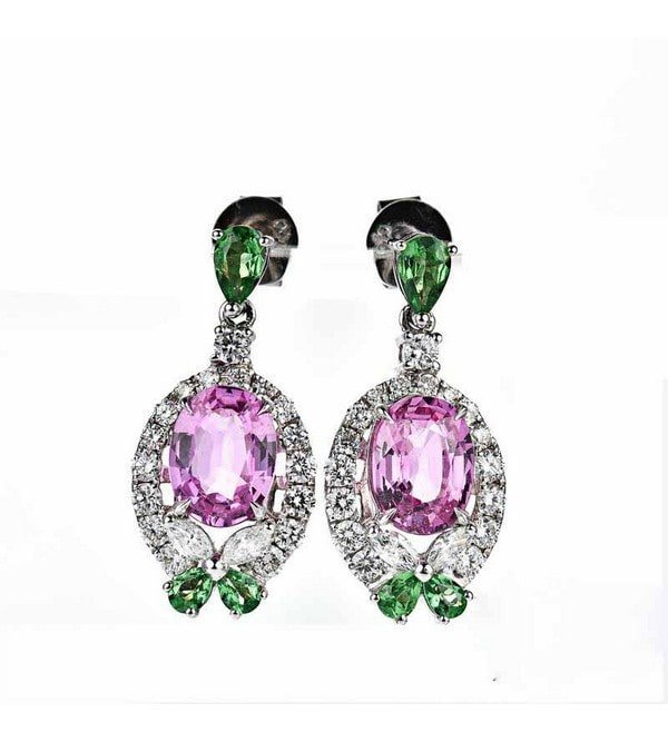 2.89 Cts Pink Sapphire Oval Shape Gemstone From Sri Lanka 4.256 Cts Diamond Earring in 18k Gold Jewelry Gross Wt. 4.862 Gms