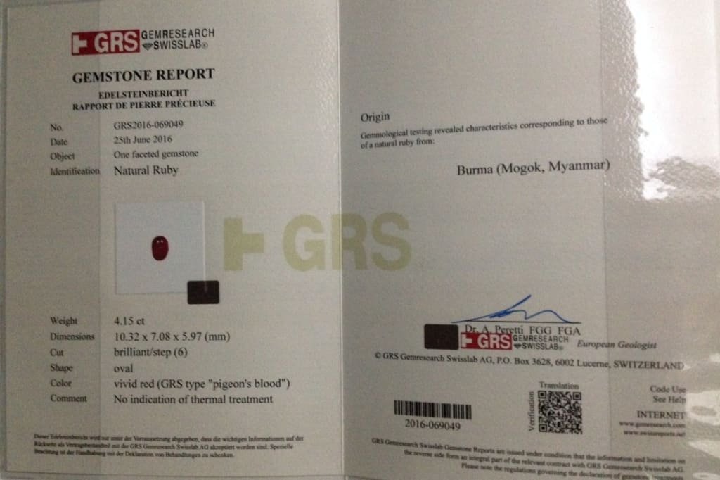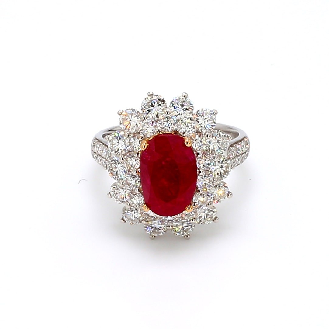 4.16 Cts Unheated Pigeon Blood Red Ruby Oval Shape Gemstone From Burma 2.606 Cts Diamond Ring in 18k Gold Jewelry GRS Certified