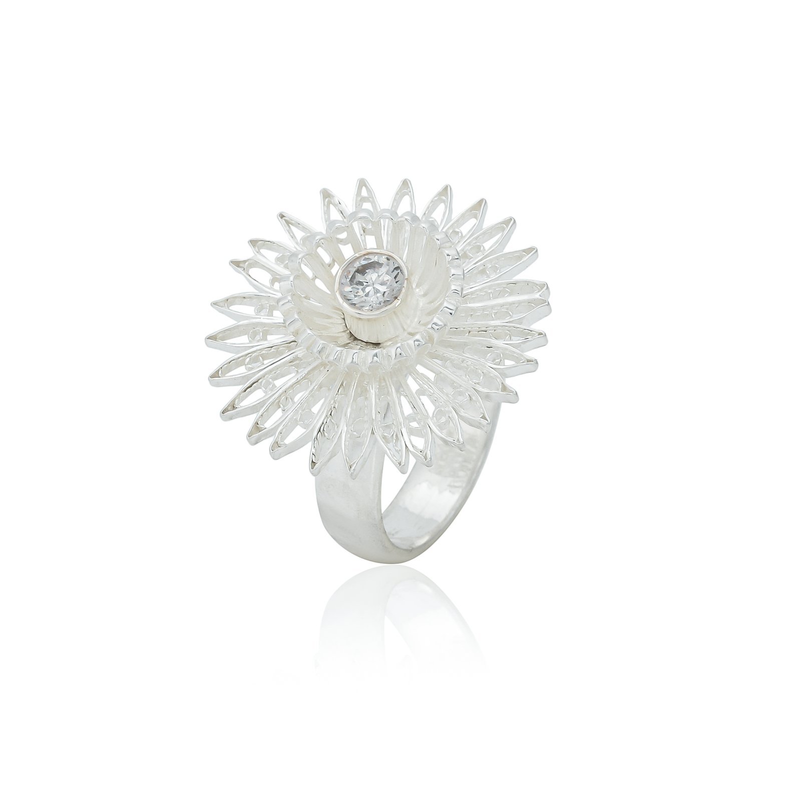Diamond Ring 0.85 Cts Gemstone Silver Jewelry 7.67 Gms Filigiree Setting