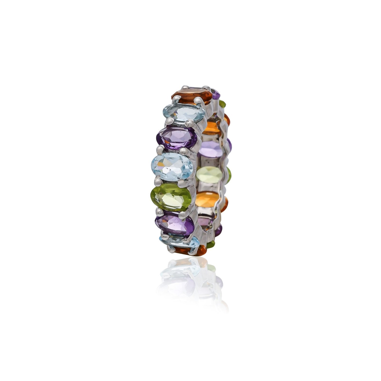Multi Gemstones Ring 5.92 Cts Gemstone Silver Jewelry 4.76 Gms 6X4 mm Oval Shape Multi Gemstones Setting
