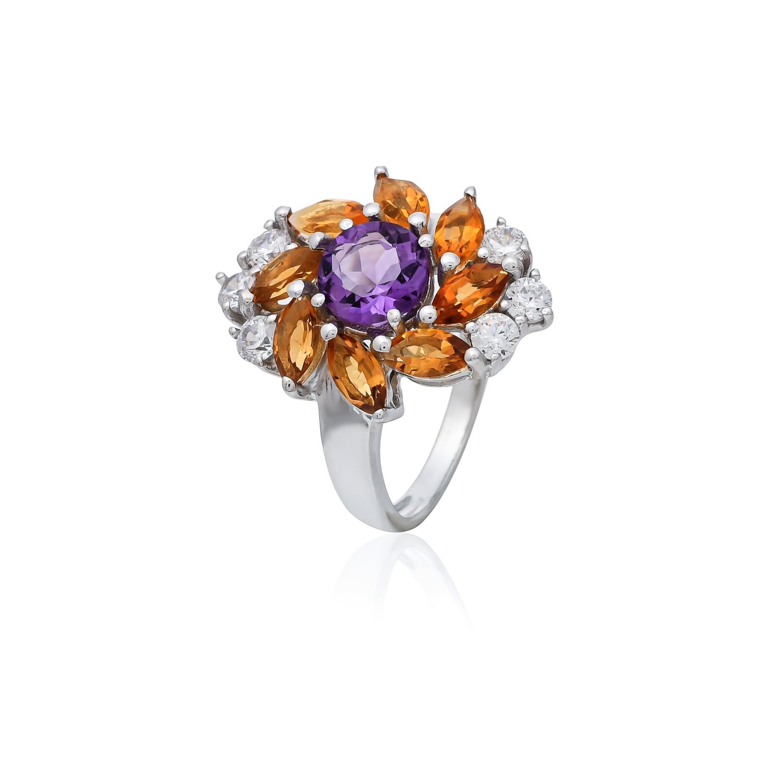 Multi Gemstones Ring 1.20 Cts Gemstone Silver Jewelry 5.36 Gms Multi Gemstones Setting