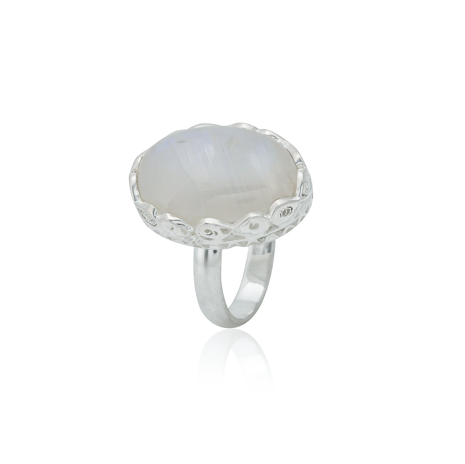 Rainbow Moonstone Ring 26.00 Cts Gemstone Silver Jewelry 13.19 Gms Filigiree Setting