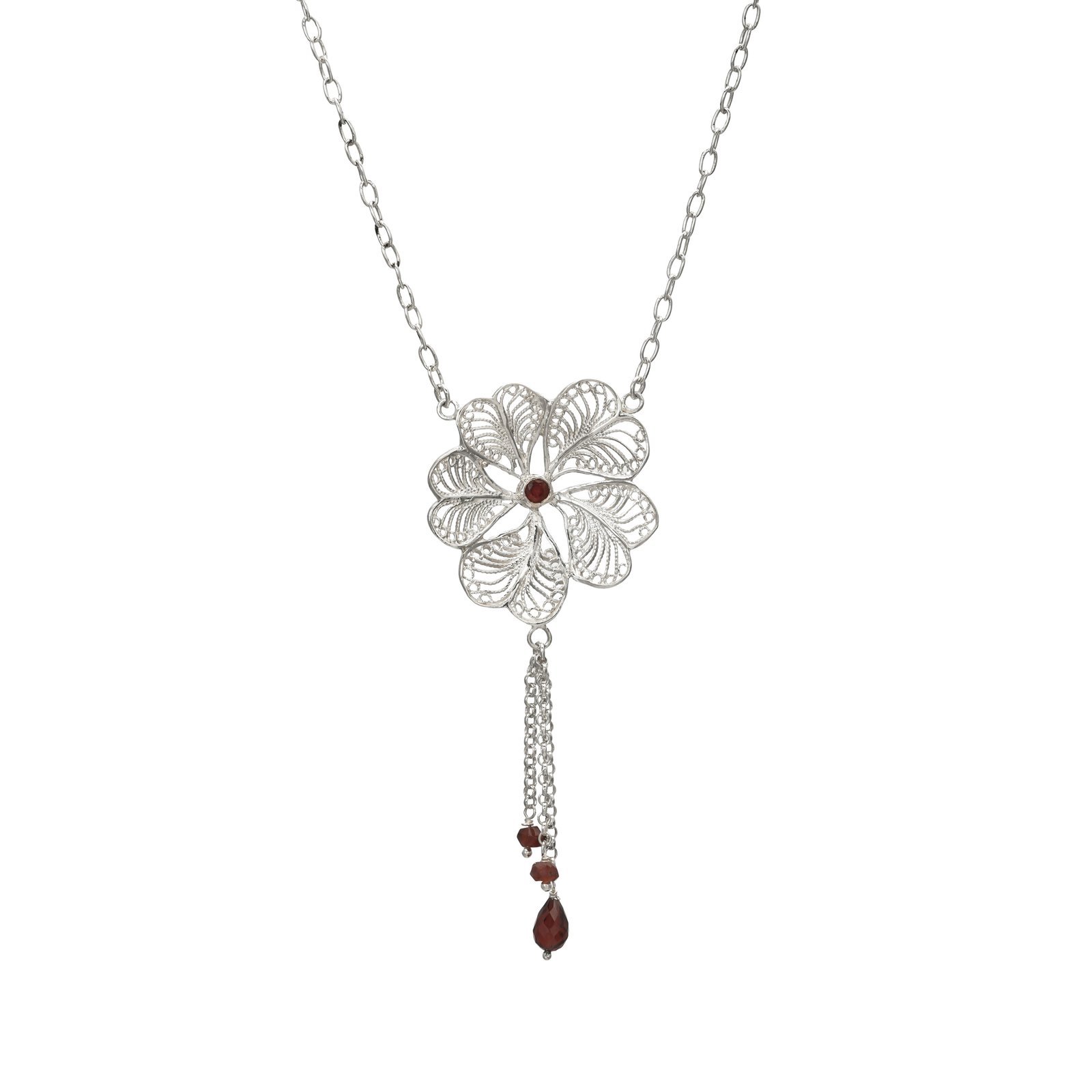 Garnet Pendant 1.47 Cts Gemstone Silver Jewelry 6.17 Gms Filigiree Setting