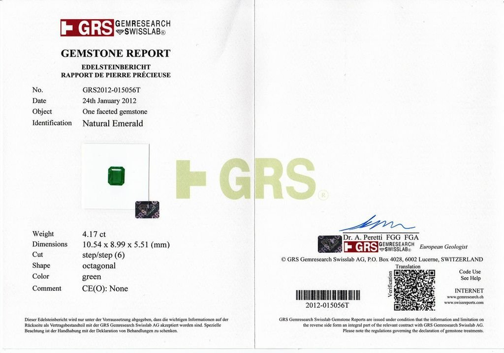 4.17 Cts Emerald Octagon Shape Green Color Gemstone Certified by GRS All are per cts price , Contact us directly to buy this item