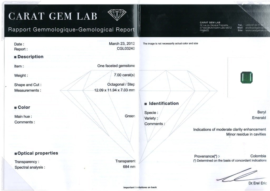 7 Cts Emerald Octagon Shape Green Color Gemstone From Colombia Certified by CGL All are per cts price , Contact us directly to buy this item