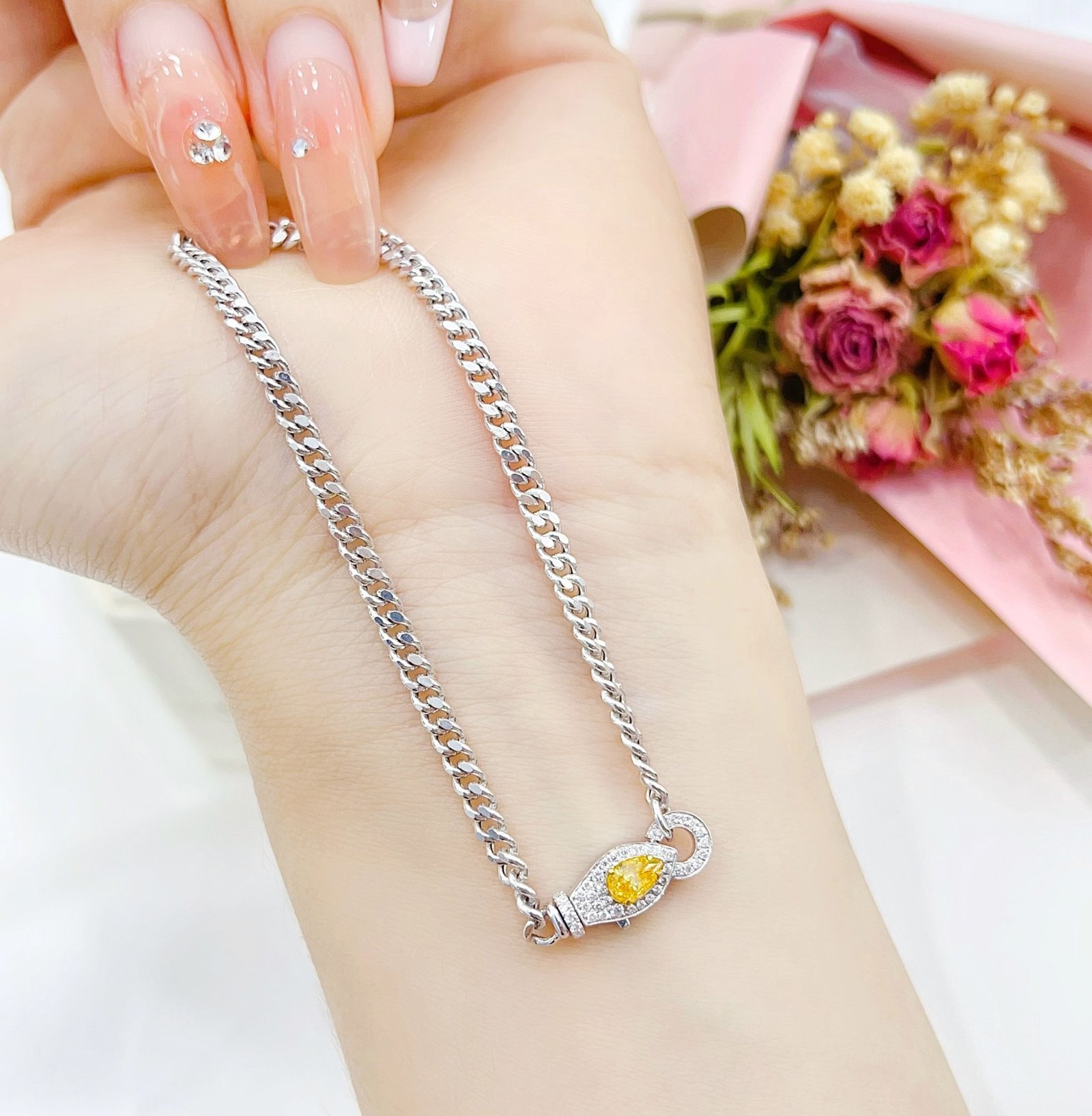 0.23 Cts Fancy Yellow Diamond Pear Shape Gemstone 0.13 Cts Diamond Bracelet in 18k Gold Jewelry Gross Wt. 4.15 Gms