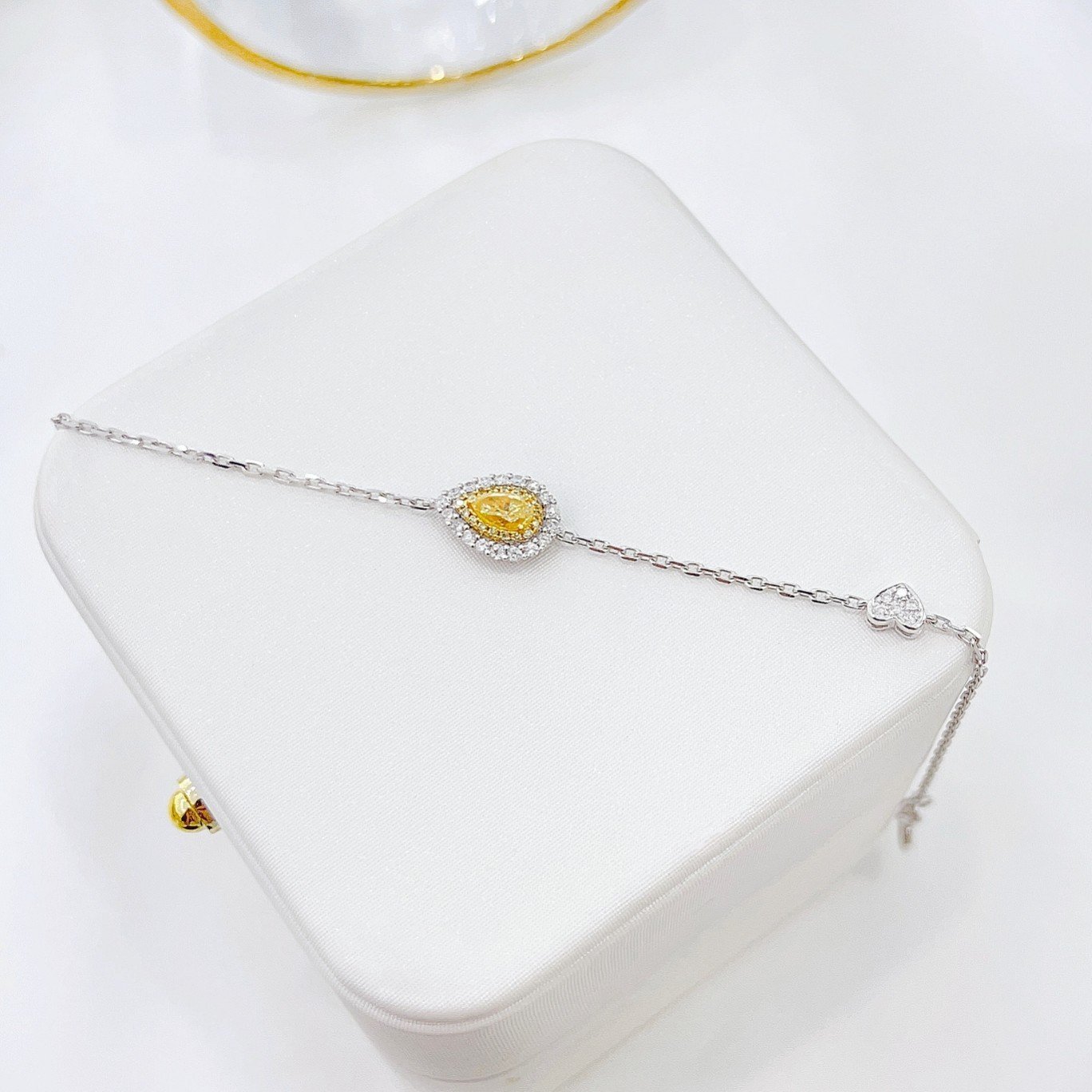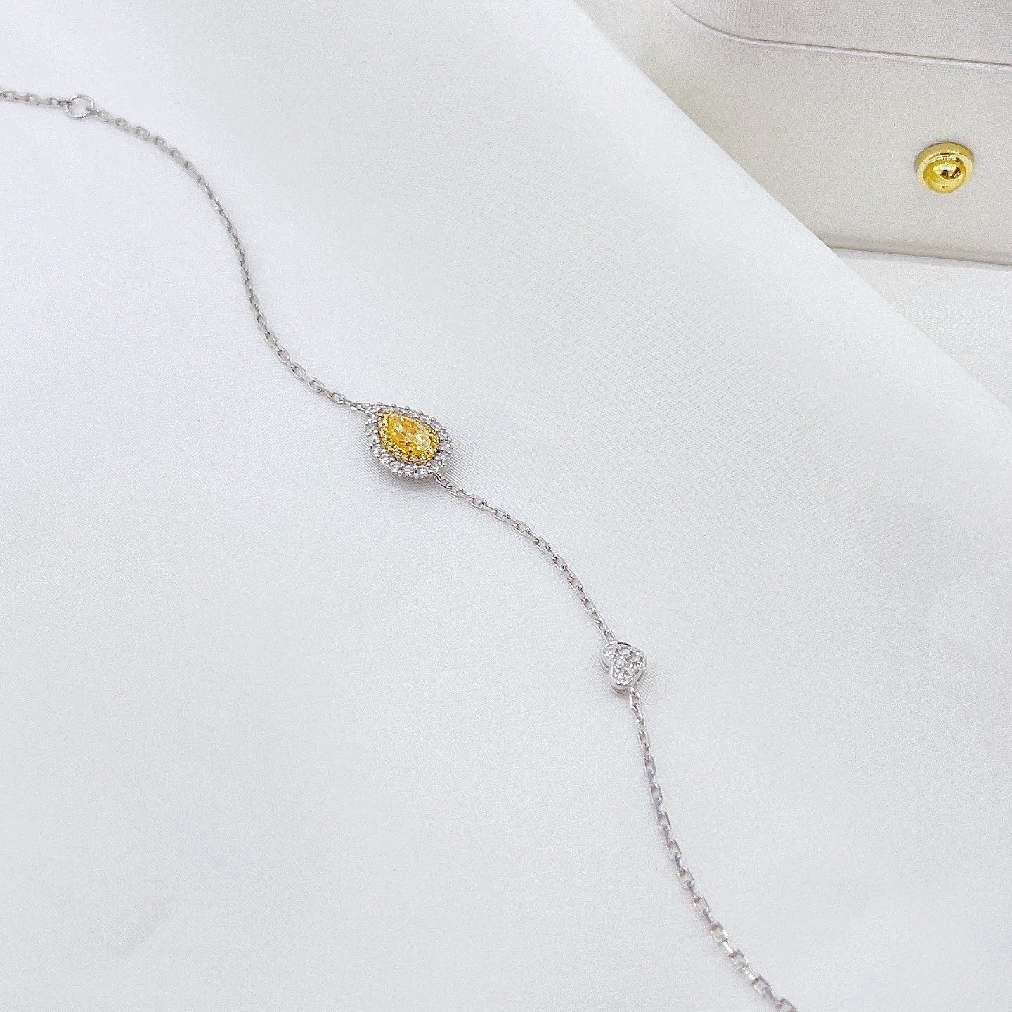 0.30 Cts Fancy Yellow Diamond Pear Shape Gemstone 0.22 Cts Diamond Bracelet in 18k Gold Jewelry Gross Wt. 2.23 Gms
