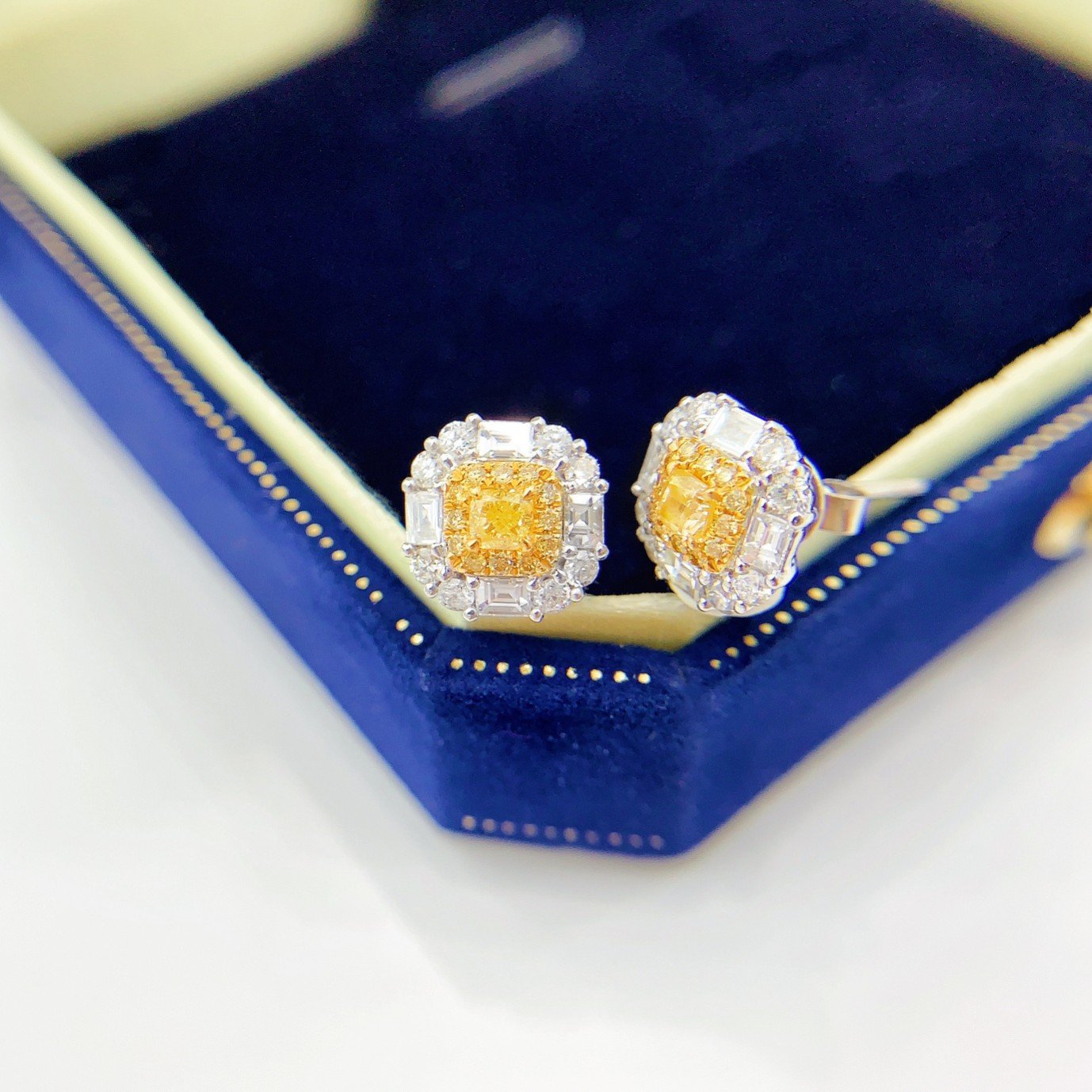 0.22 Cts Fancy Yellow Diamond Cushion Shape Gemstone 0.78 Cts Diamond Earring in 18k Gold Jewelry Gross Wt. 2.41 Gms