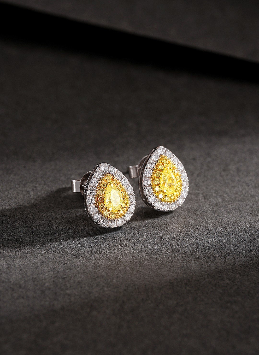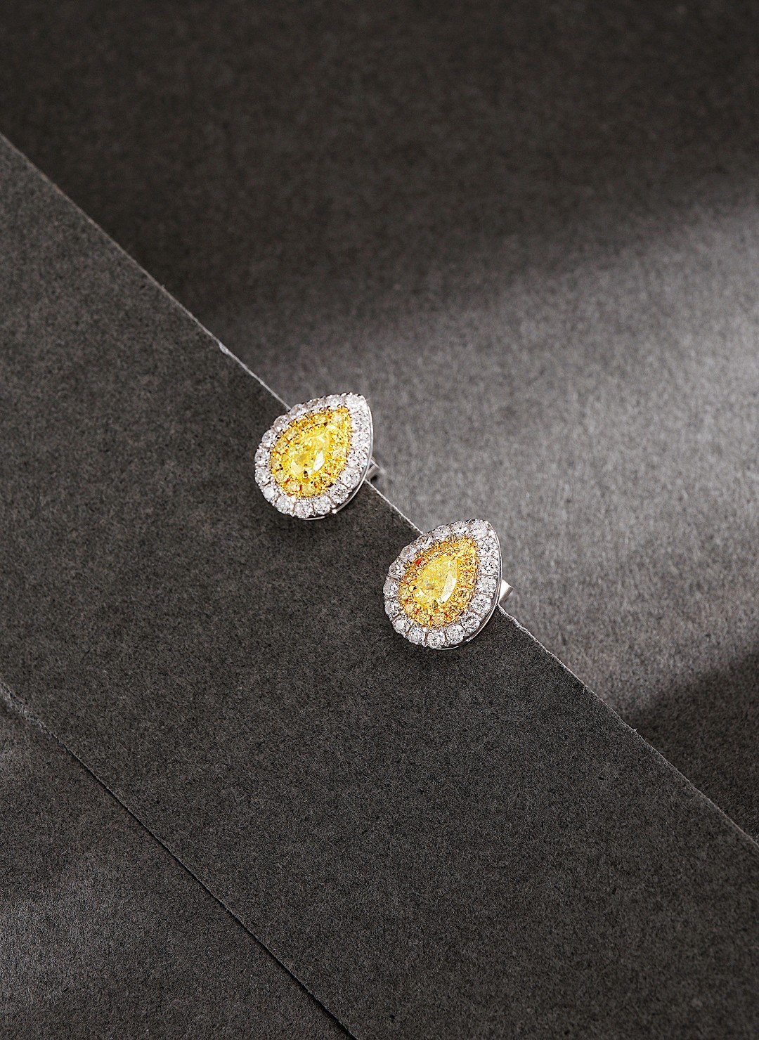 0.28 Cts Fancy Yellow Diamond Pear Shape Gemstone 0.42 Cts Diamond Earring in 18k Gold Jewelry Gross Wt. 1.98 Gms