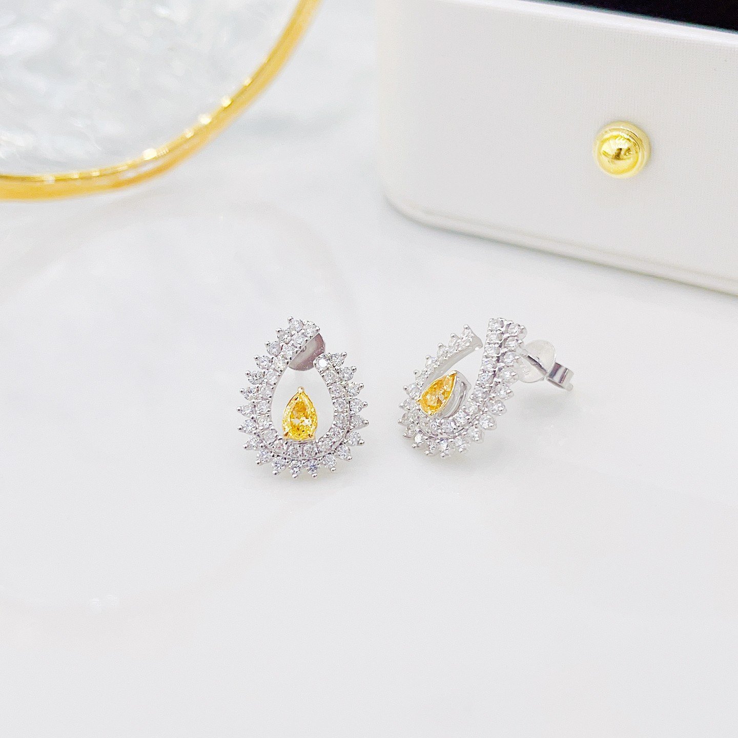 0.34 Cts Fancy Yellow Diamond Pear Shape Gemstone 0.7 Cts Diamond Earring in 18k Gold Jewelry Gross Wt. 3.16 Gms