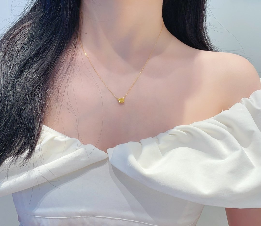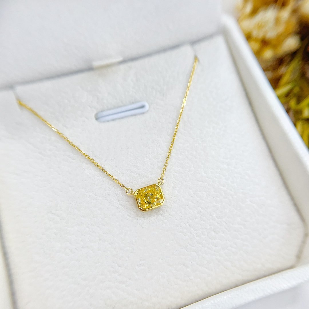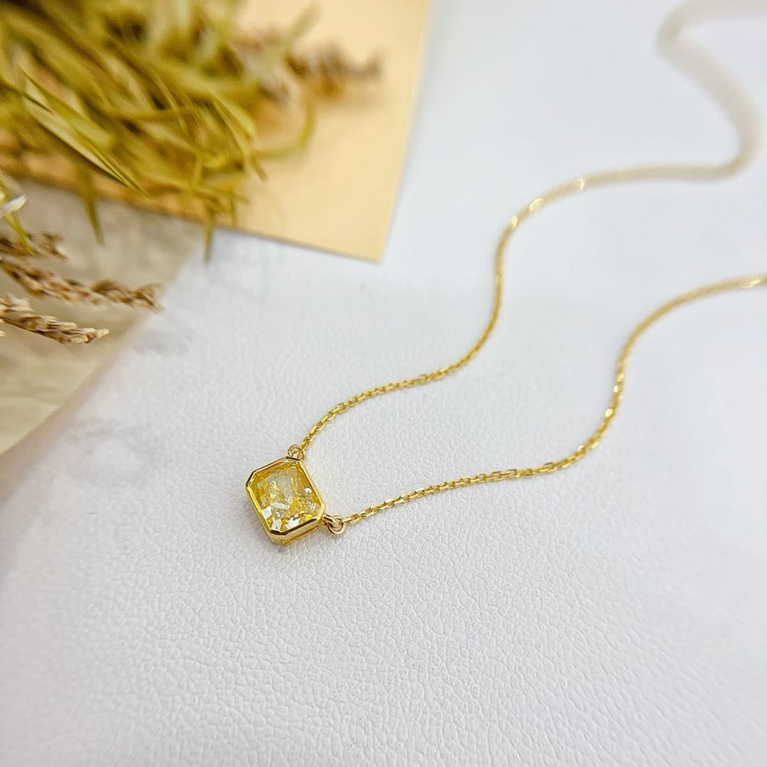 0.73 Cts Fancy Yellow Diamond Cushion Shape Gemstone Necklace in 18k Gold Jewelry Gross Wt. 1.53 Gms