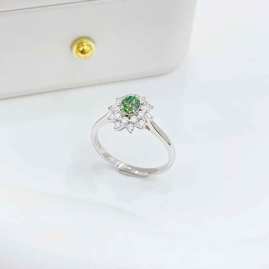0.41 Cts Green Diamond Oval Shape Gemstone 0.35 Cts Diamond Ring in 18k Gold Jewelry Gross Wt. 2.7 Gms