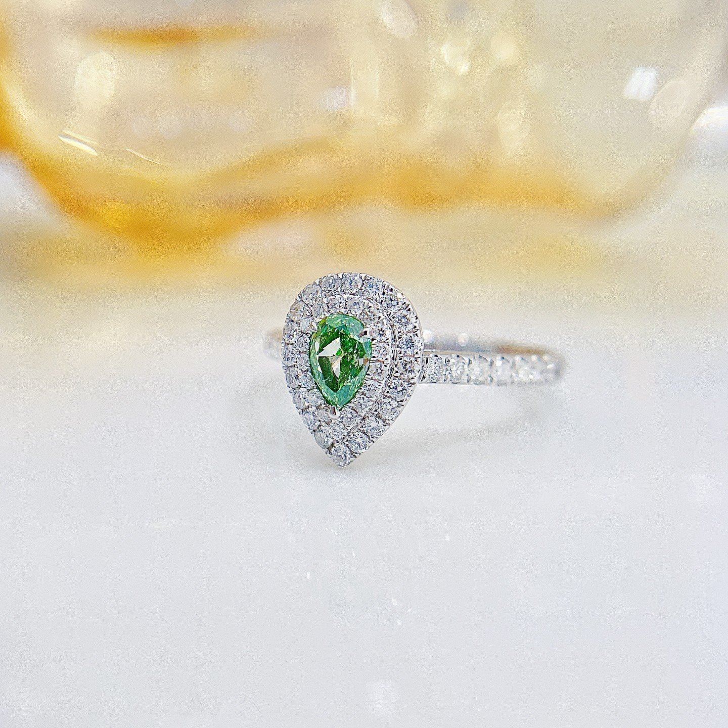 0.41 Cts Green Diamond Pear Shape Gemstone 0.46 Cts Diamond Ring in 18k Gold Jewelry Gross Wt. 2.85 Gms
