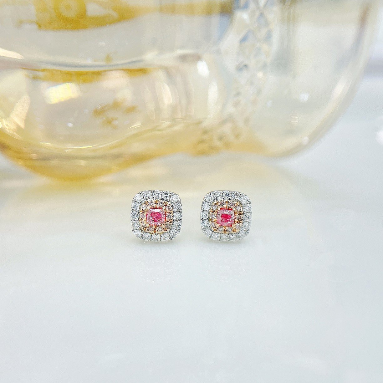 0.20 Cts Diamond Cushion Shape Gemstone 0.3 Cts Diamond Earring in 18k Gold Jewelry Gross Wt. 1.99 Gms