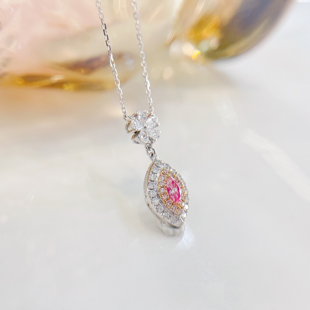 0.12 Cts Diamond Marquise Shape Gemstone 0.43 Cts Diamond Necklace in 18k Gold Jewelry Gross Wt. 2.39 Gms