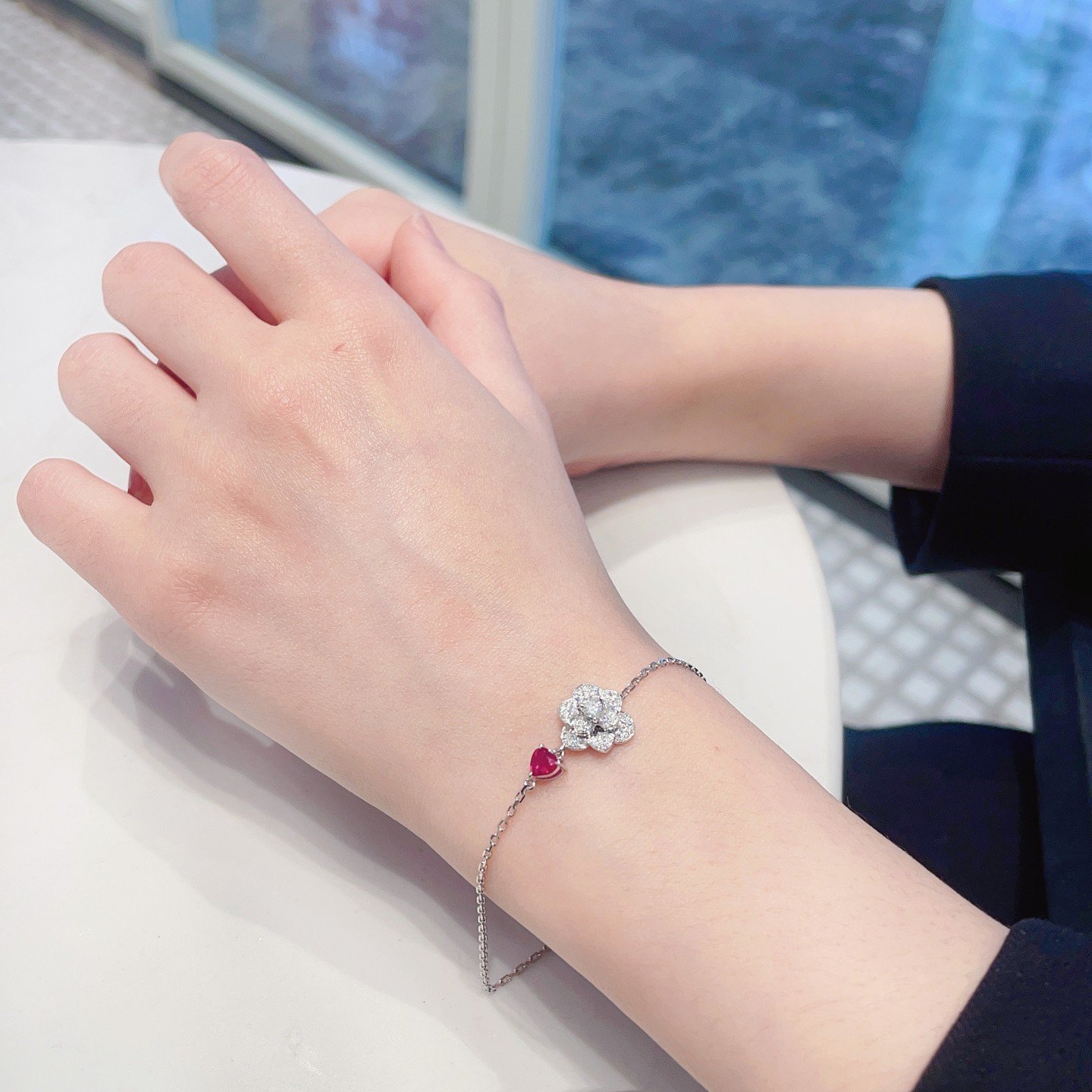 0.29 Cts Vivid Red Ruby Heart Shape Gemstone 0.28 Cts Diamond Bracelet in 18k Gold Jewelry Gross Wt. 2.64 Gms