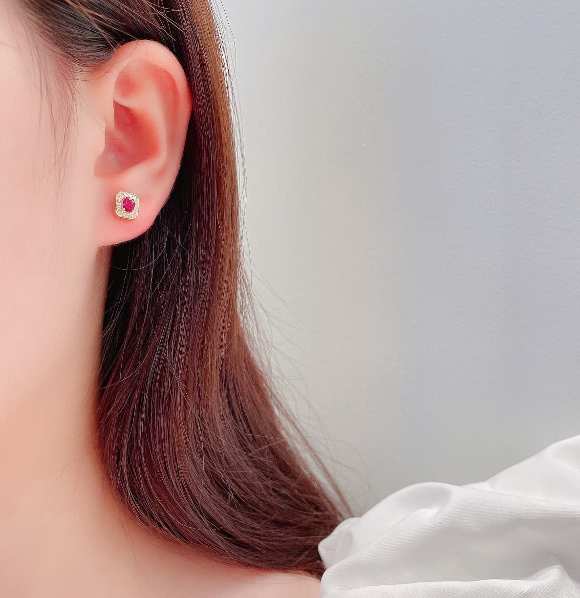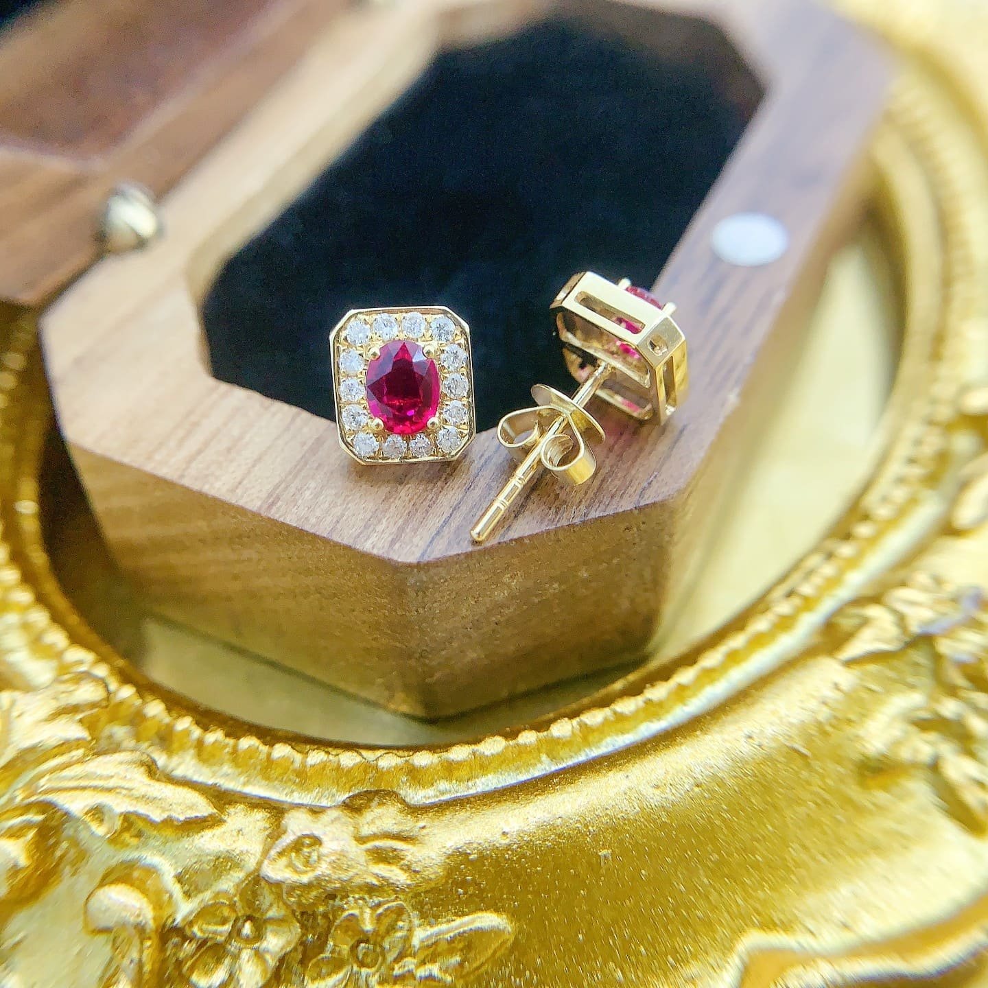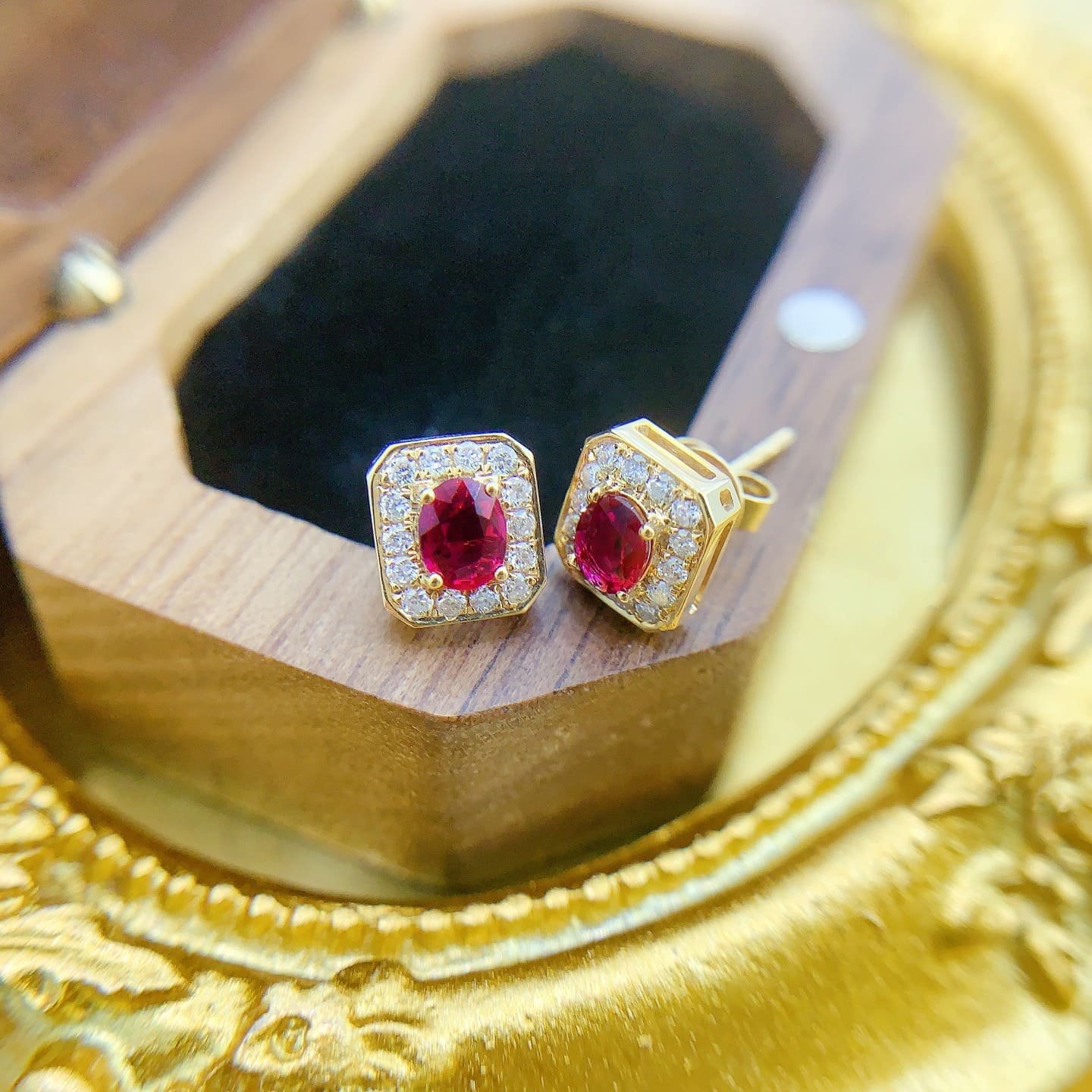 0.54 Cts Vivid Red Ruby Oval Shape Gemstone From Mozambic 0.22 Cts Diamond Earring in 18k Gold Jewelry Gross Wt. 1.92 Gms