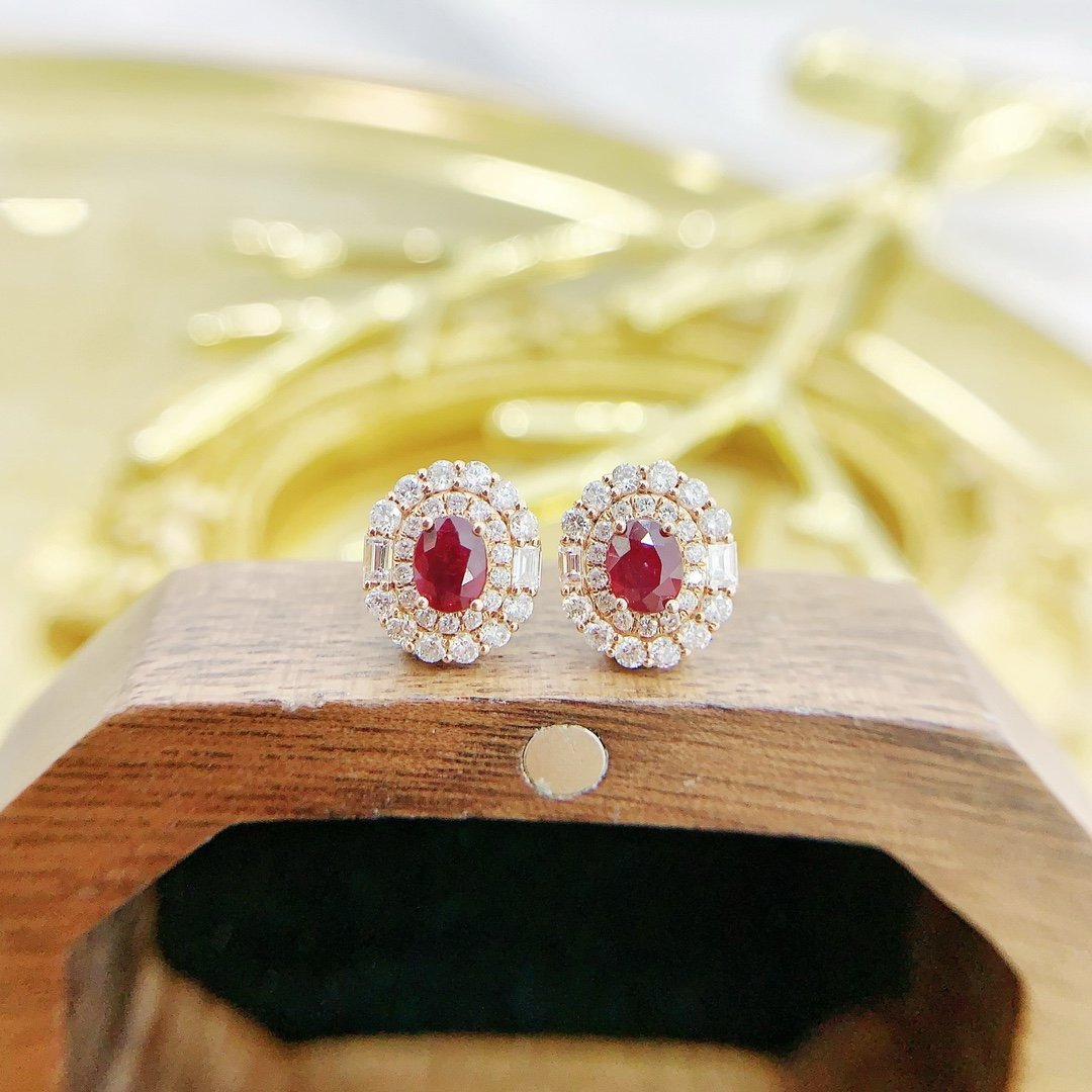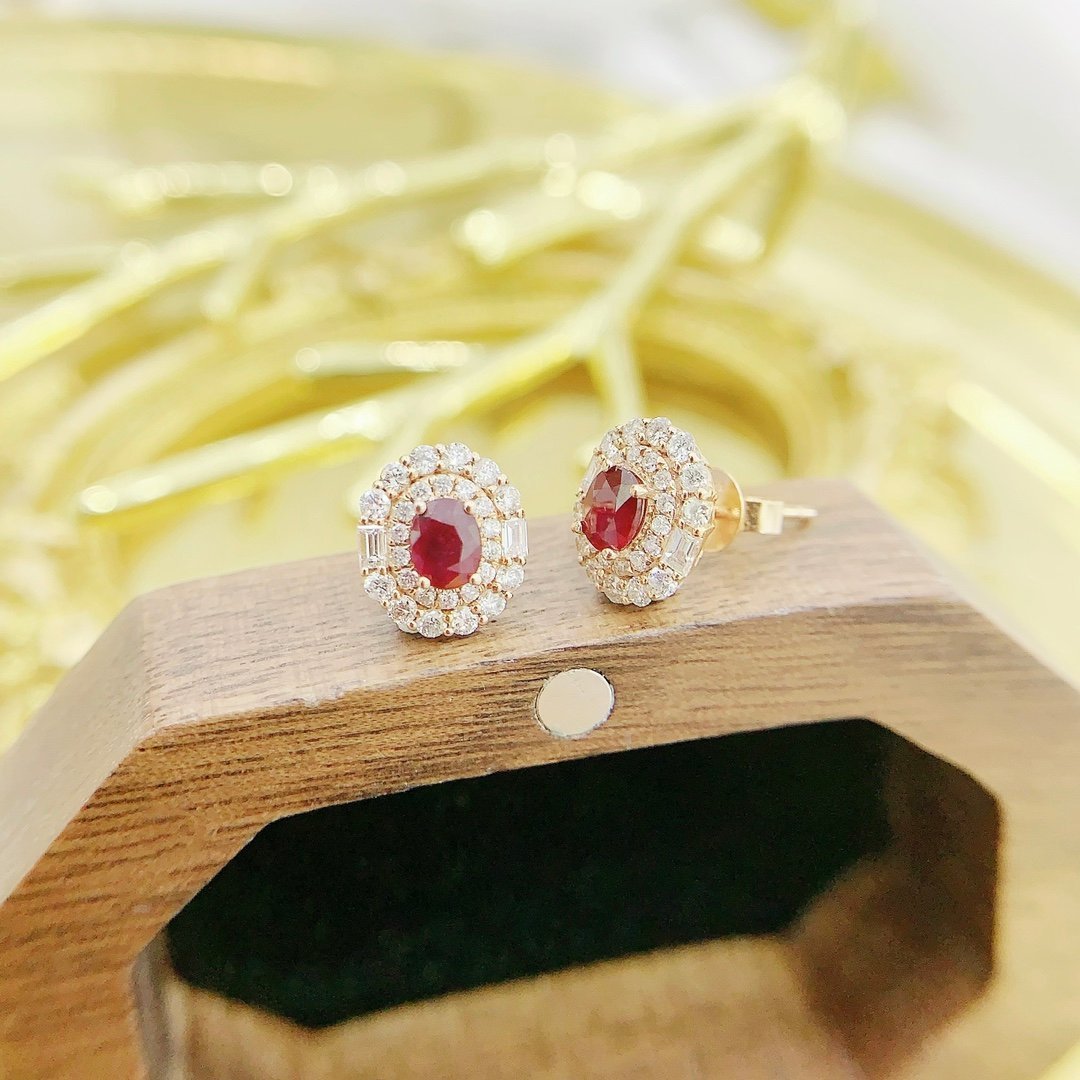 0.58 Cts Vivid Red Ruby Oval Shape Gemstone 0.58 Cts Diamond Earring in 18k Gold Jewelry Gross Wt. 2.43 Gms