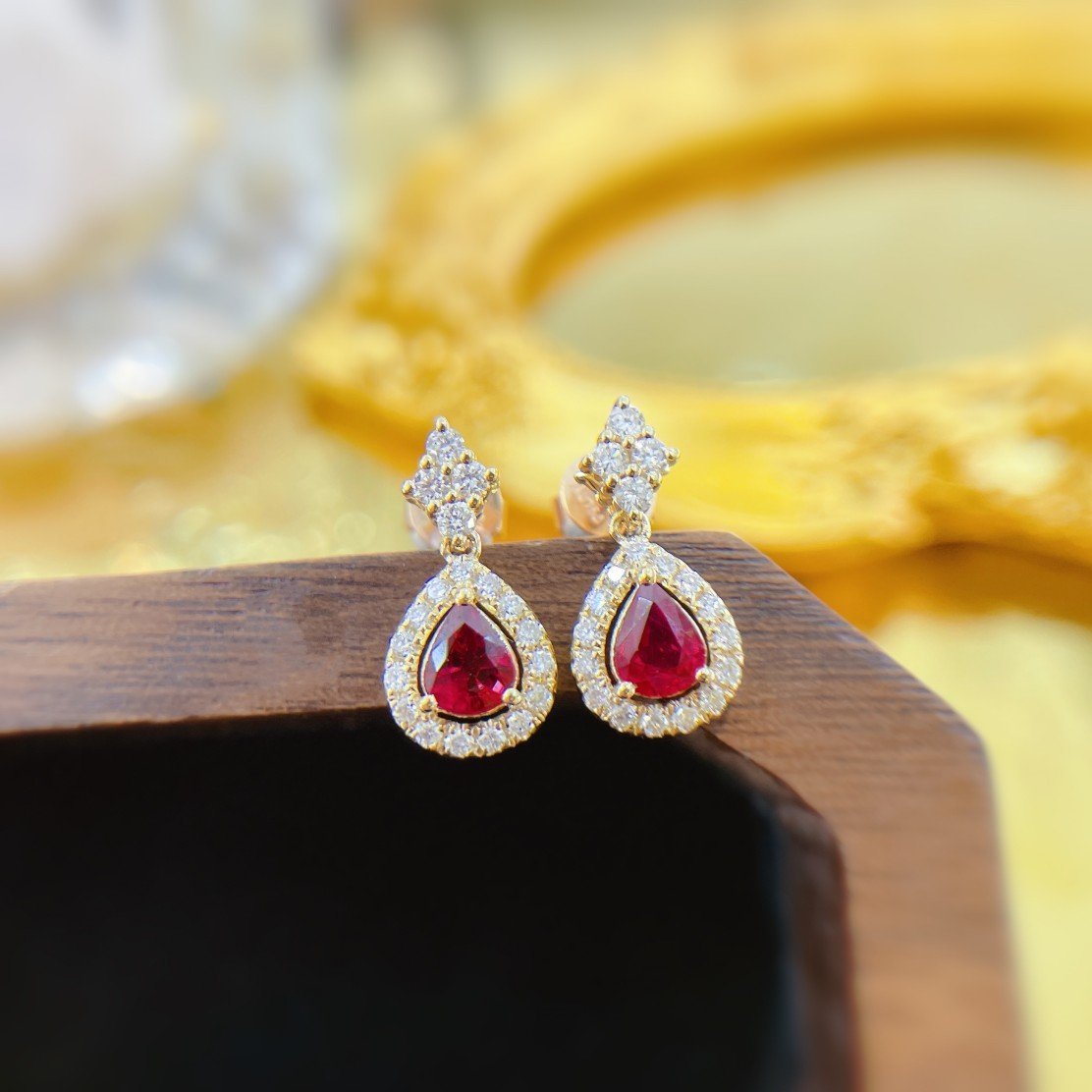 0.64 Cts Vivid Red Ruby Pear Shape Gemstone From Mozambic 0.36 Cts Diamond Earring in 18k Gold Jewelry Gross Wt. 2.02 Gms