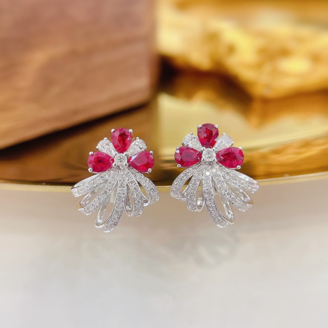 1.06 Cts Vivid Red Ruby Pear Shape Gemstone 0.48 Cts Diamond Earring in 18k Gold Jewelry Gross Wt. 2.43 Gms