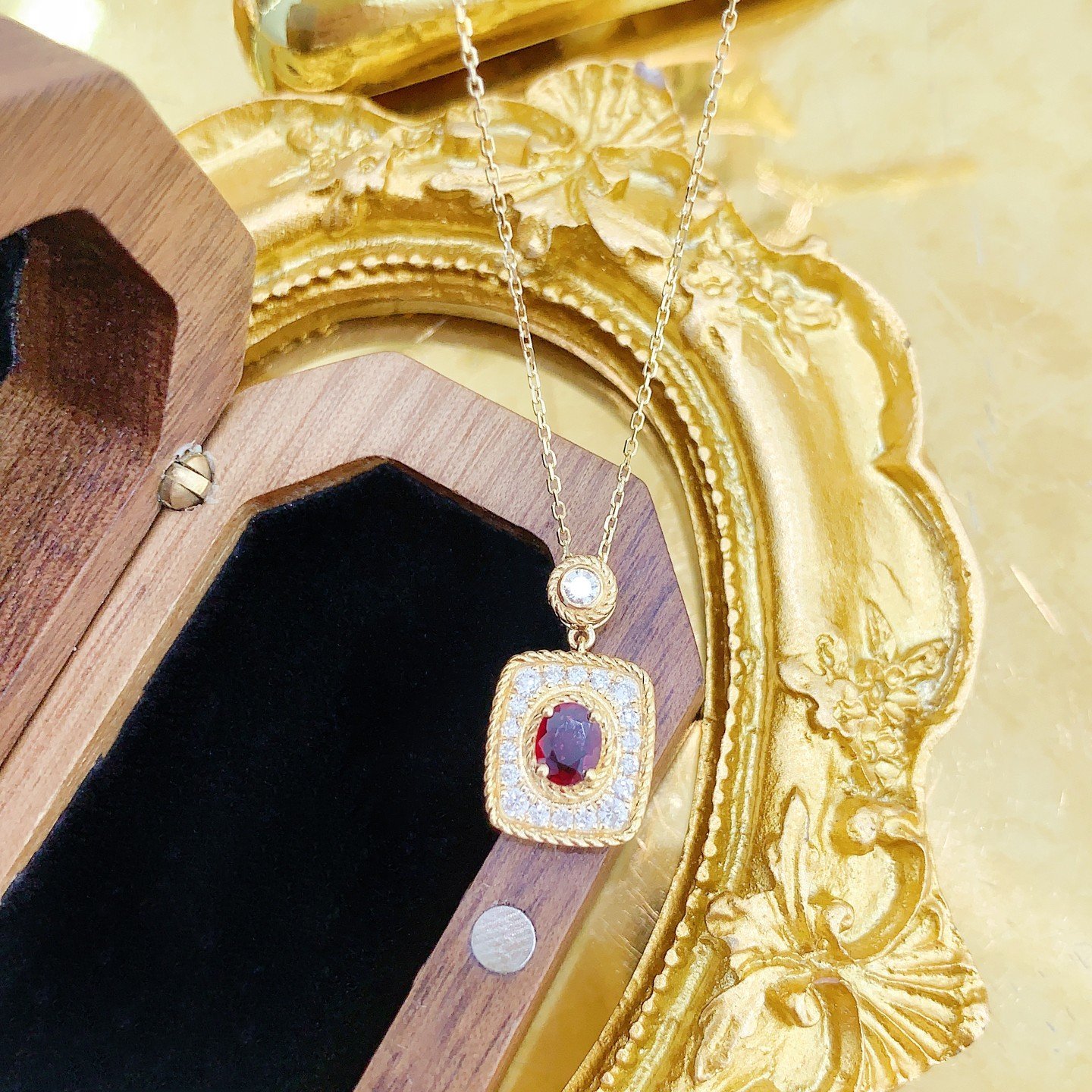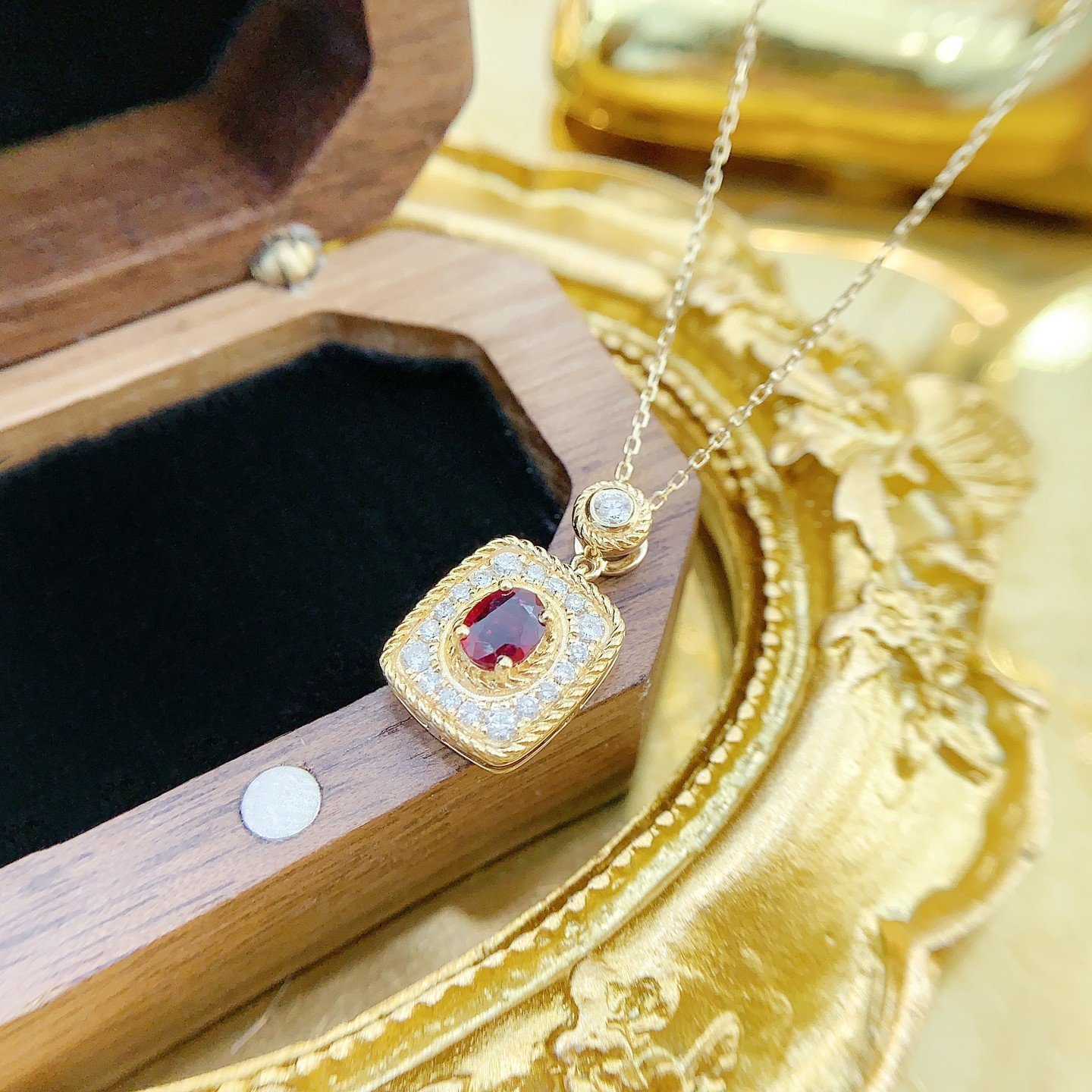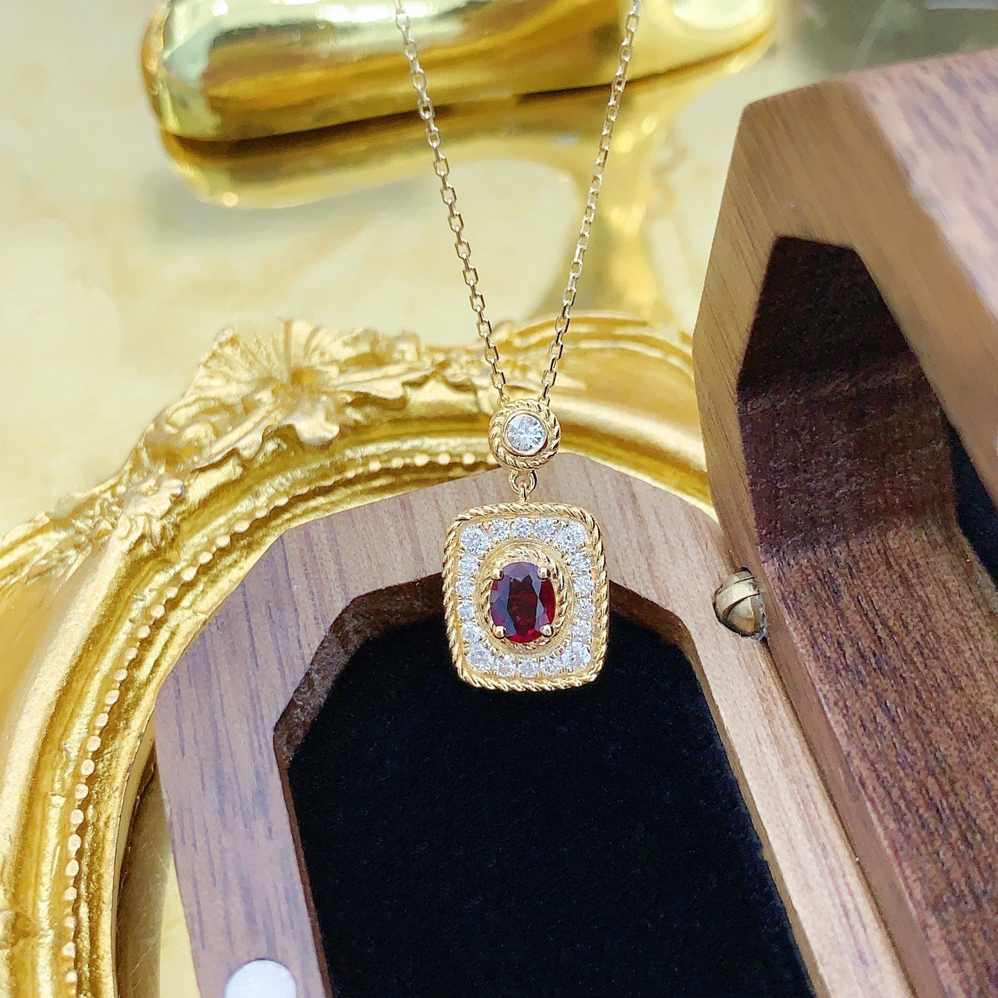 0.40 Cts Vivid Red Ruby Oval Shape Gemstone 0.25 Cts Diamond Necklace in 18k Gold Jewelry Gross Wt. 3.18 Gms
