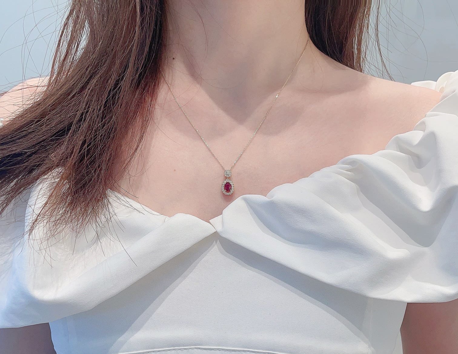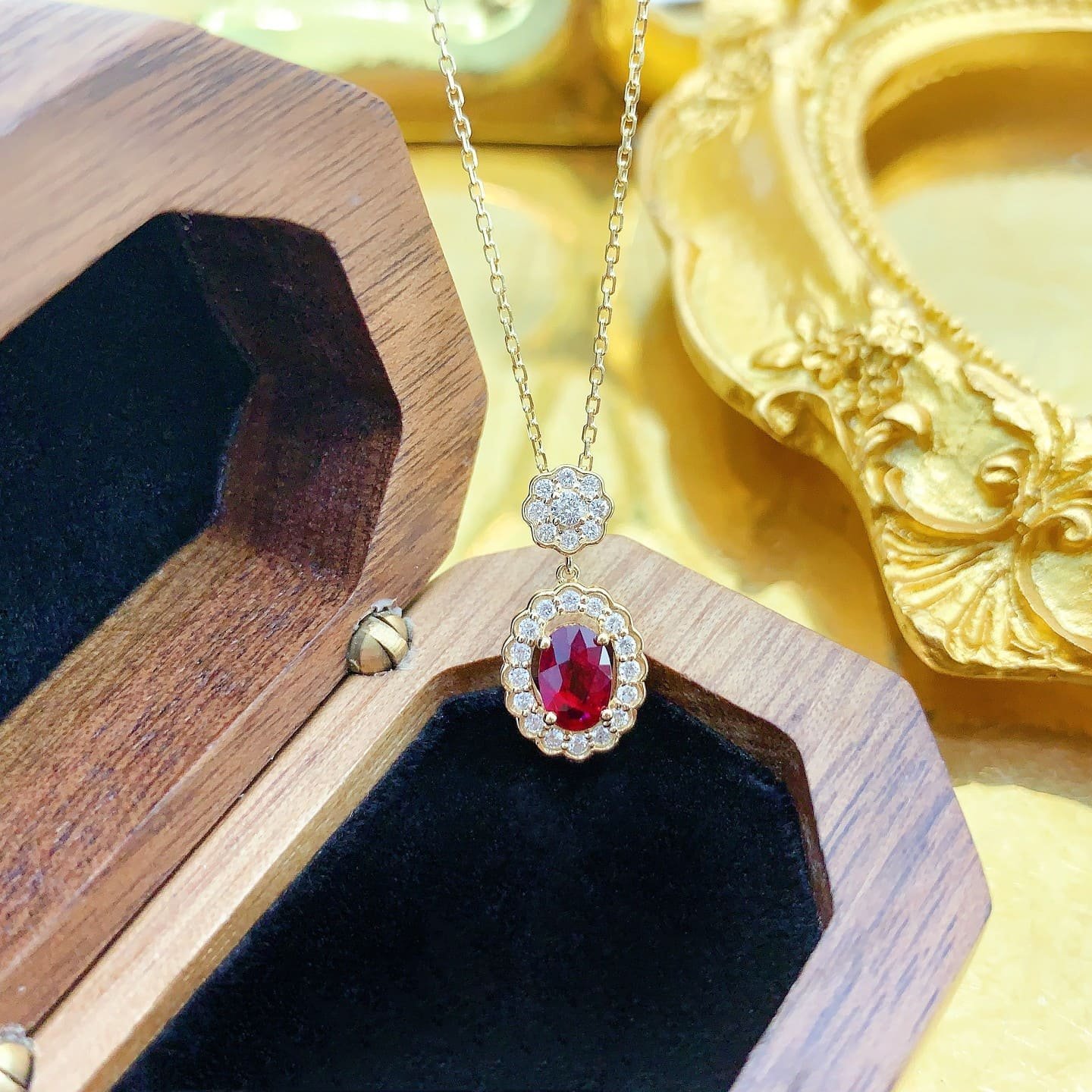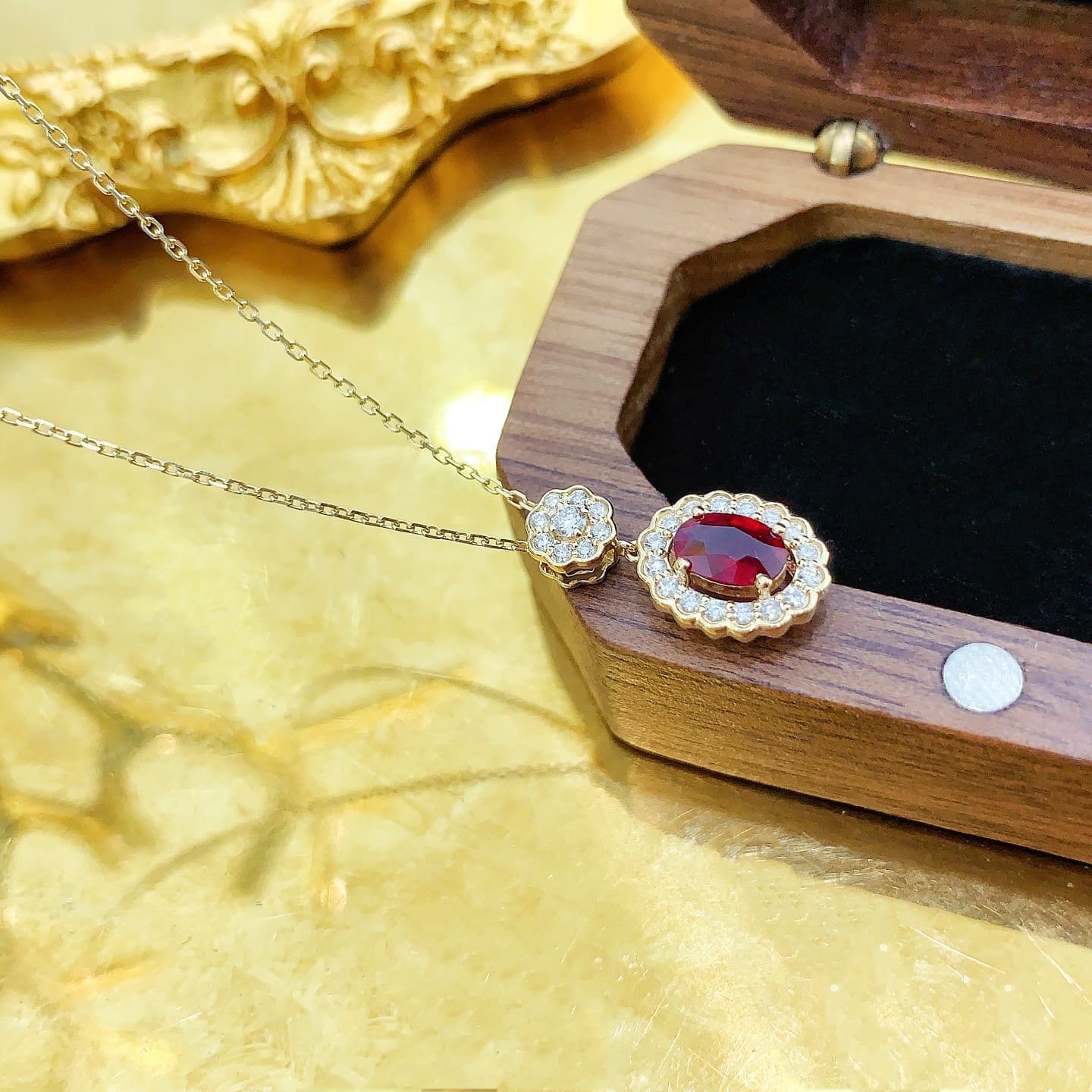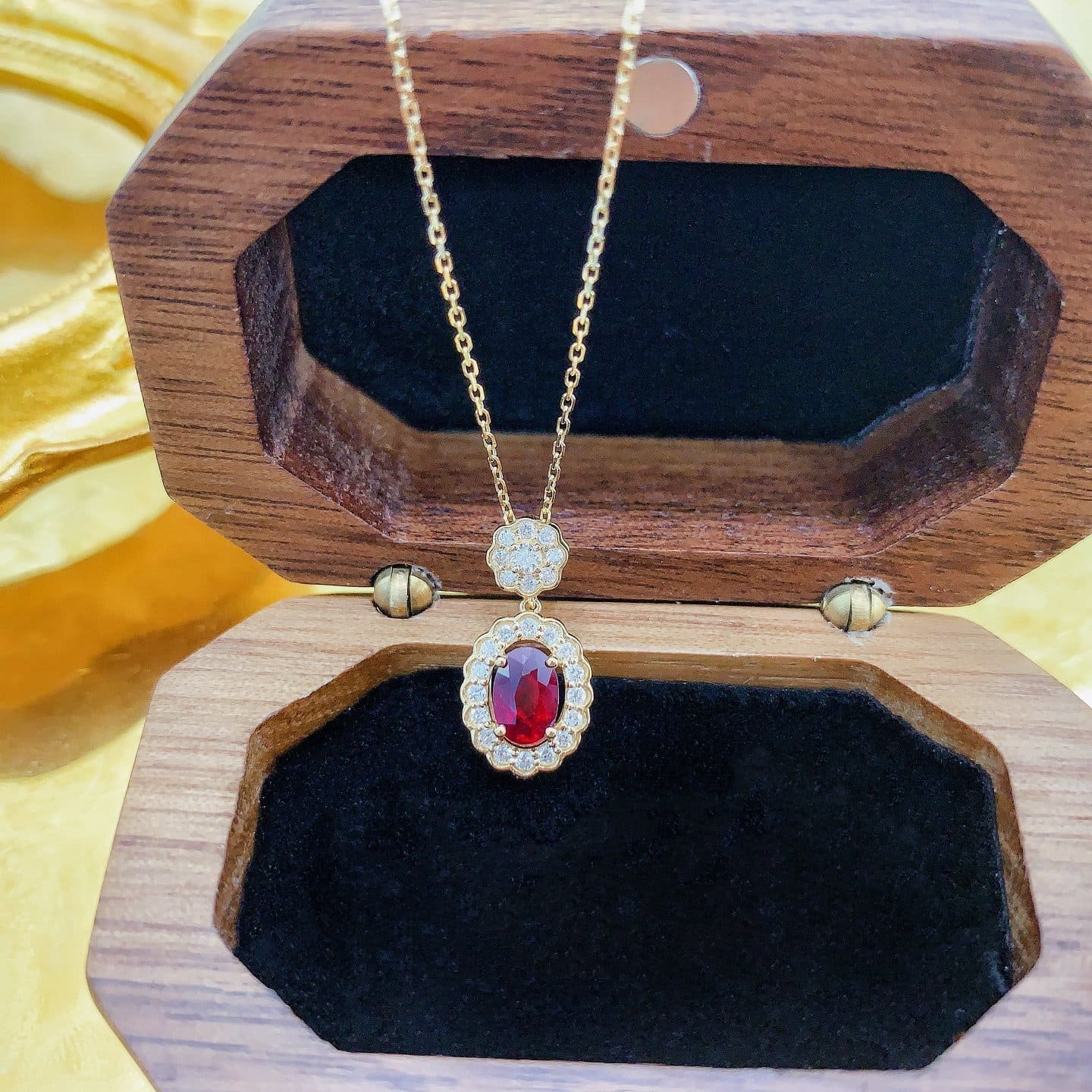 0.50 Cts Vivid Red Ruby Oval Shape Gemstone From Mozambic 0.19 Cts Diamond Necklace in 18k Gold Jewelry Gross Wt. 2.24 Gms