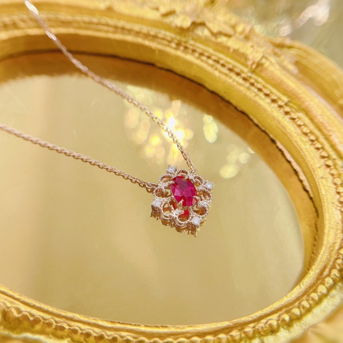 0.59 Cts Vivid Red Ruby Oval Shape Gemstone 0.05 Cts Diamond Necklace in 18k Gold Jewelry Gross Wt. 2.14 Gms