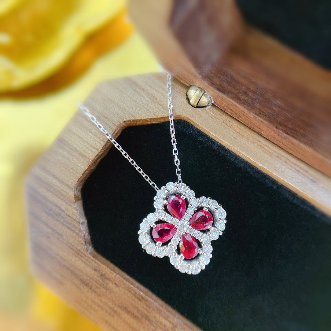 0.68 Cts Vivid Red Ruby Pear Shape Gemstone 0.4 Cts Diamond Necklace in 18k Gold Jewelry Gross Wt. 2.79 Gms