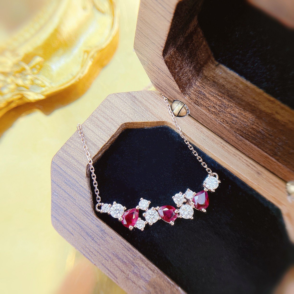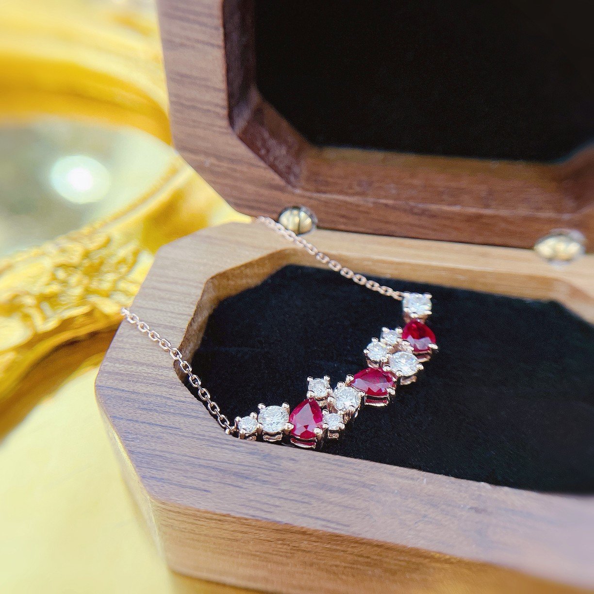 0.72 Cts Vivid Red Ruby Pear Shape Gemstone 0.54 Cts Diamond Necklace in 18k Gold Jewelry Gross Wt. 2.7 Gms