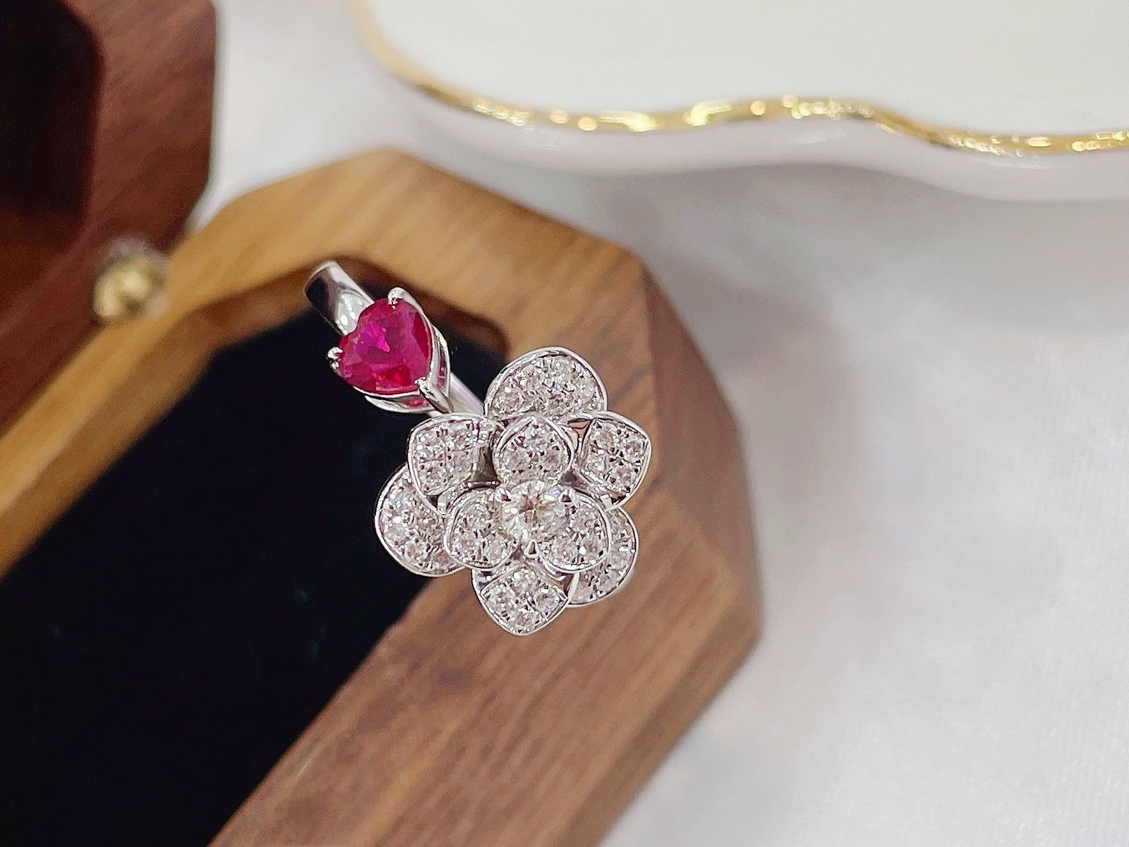 0.29 Cts Vivid Red Ruby Heart Shape Gemstone From Mozambic 0.21 Cts Diamond Ring in 18k Gold Jewelry Gross Wt. 3.32 Gms