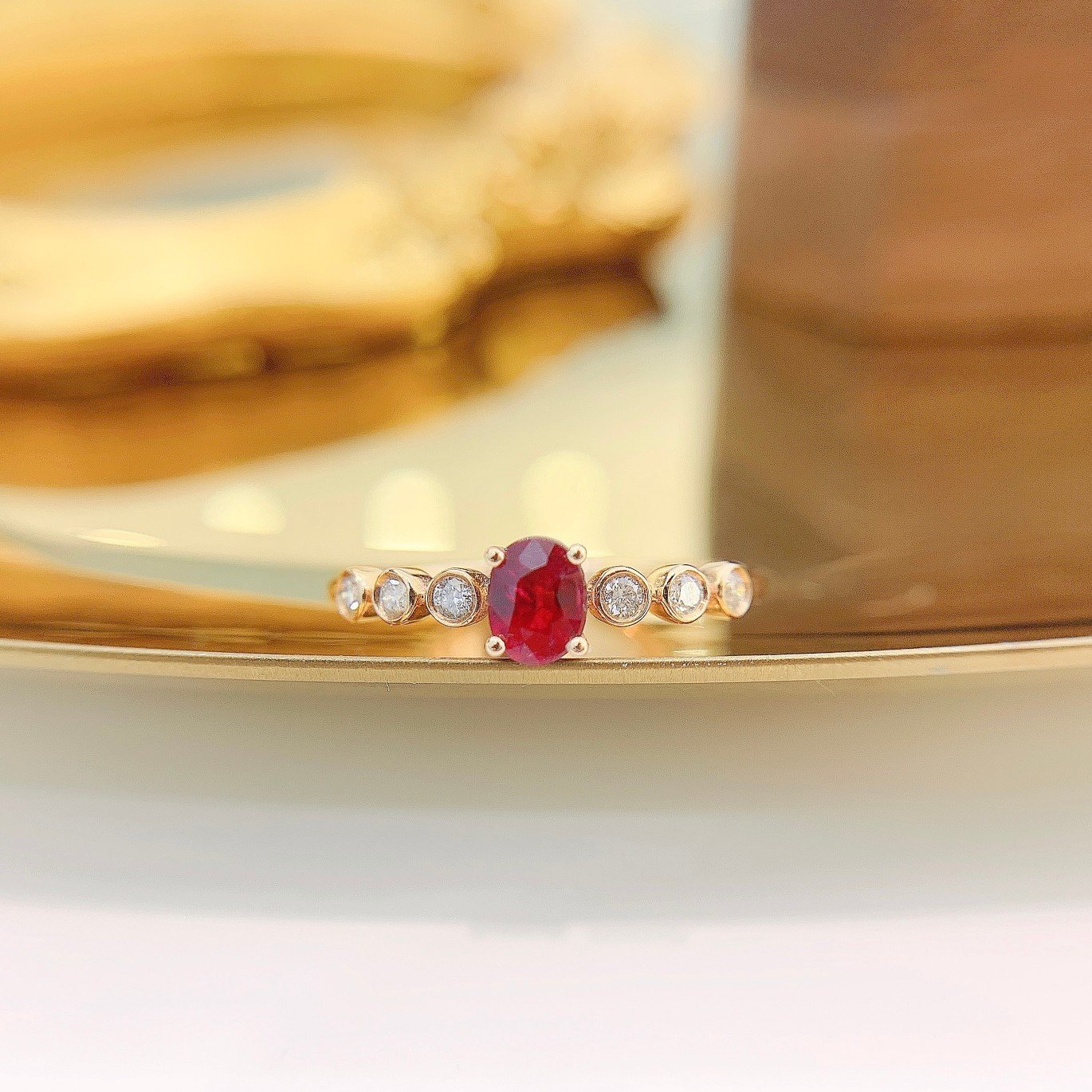 0.36 Cts Vivid Red Ruby Oval Shape Gemstone 0.1 Cts Diamond Ring in 18k Gold Jewelry Gross Wt. 1.37 Gms