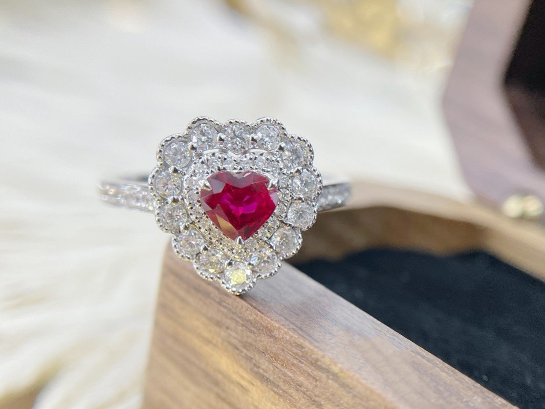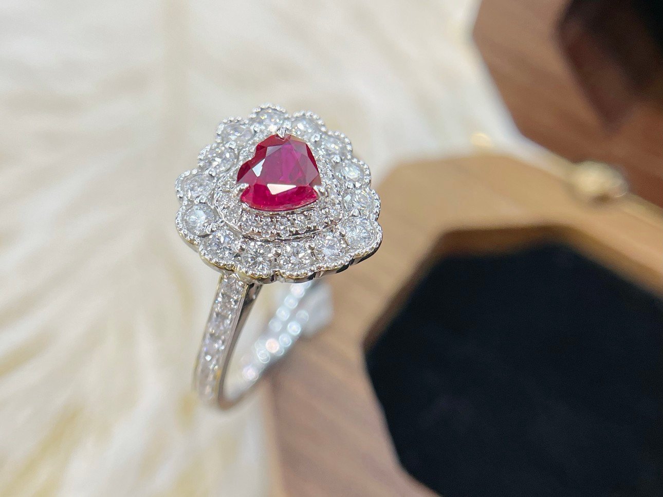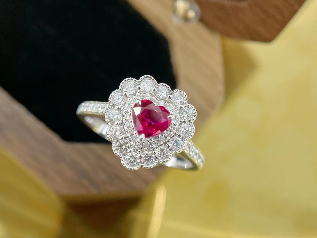 0.40 Cts Vivid Red Ruby Heart Shape Gemstone From Mozambic 0.52 Cts Diamond Ring in 18k Gold Jewelry Gross Wt. 3.29 Gms